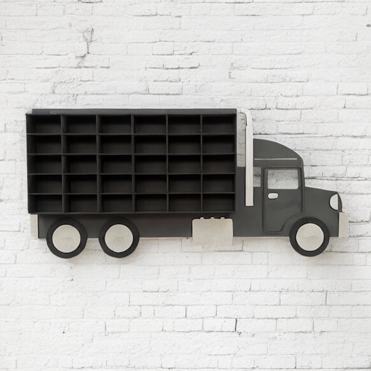 Exhibe tu colección de una forma original y divertida con esta repisa en forma de camión, diseñada especialmente para carritos a escala 1:64.