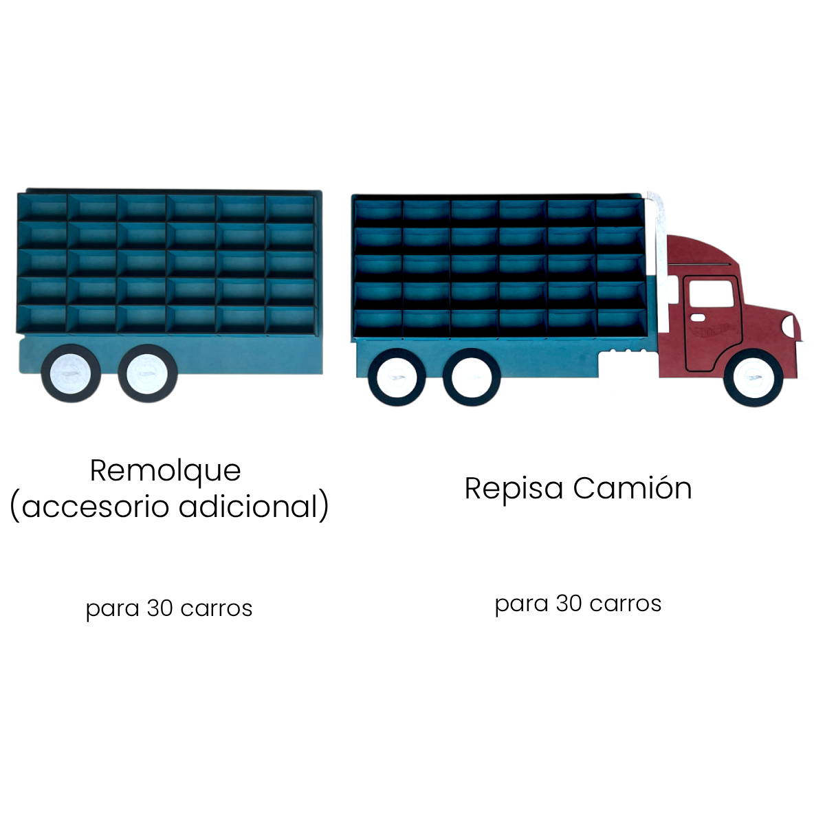 Si deseas ampliar tu exhibición, puedes agregar un remolque adicional con espacio para 30 carros más por solo $15 adicionales. Perfecto para los coleccionistas que siempre quieren un poco más.